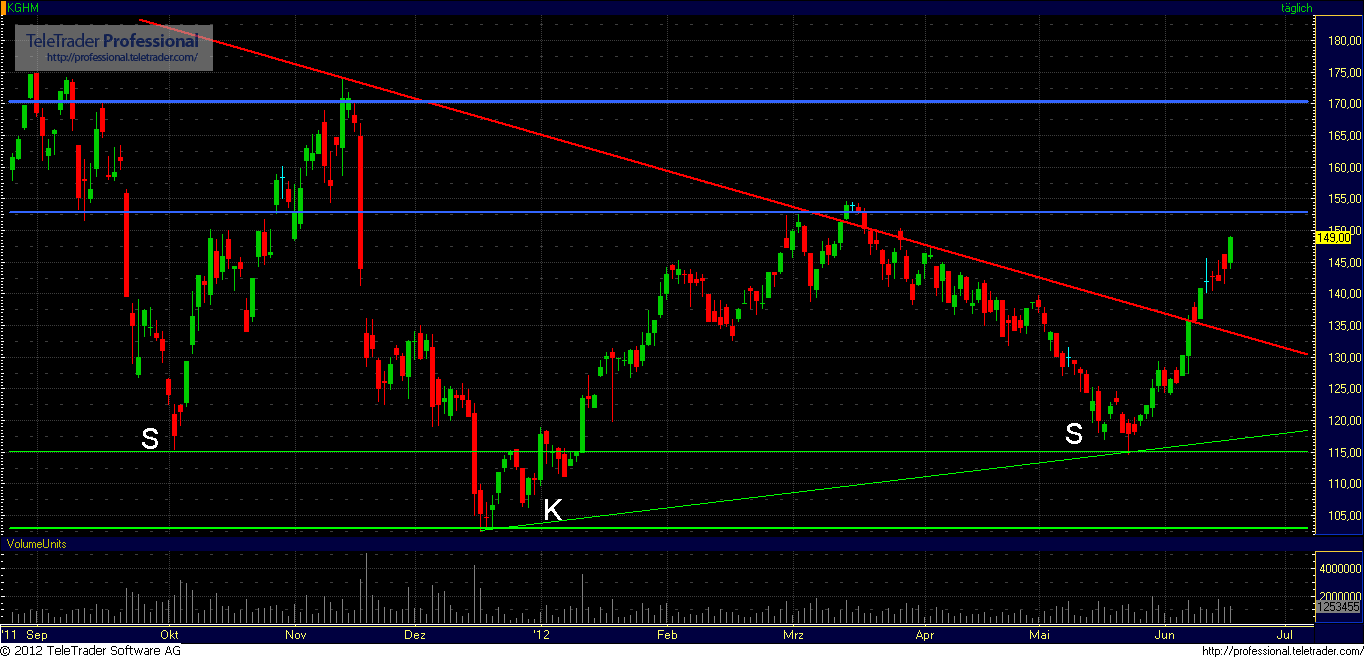 Close am 8. an Widerstand, daxmässig per Gap drüber mit Close am Widerstand zum Luftholen sozusagen und mit Schwung zur 145.