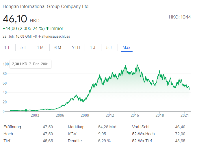 Seit gestern notiert Hengan ex Dividende. Zahltag laut DivvyDiary: 6. Oktober 2021