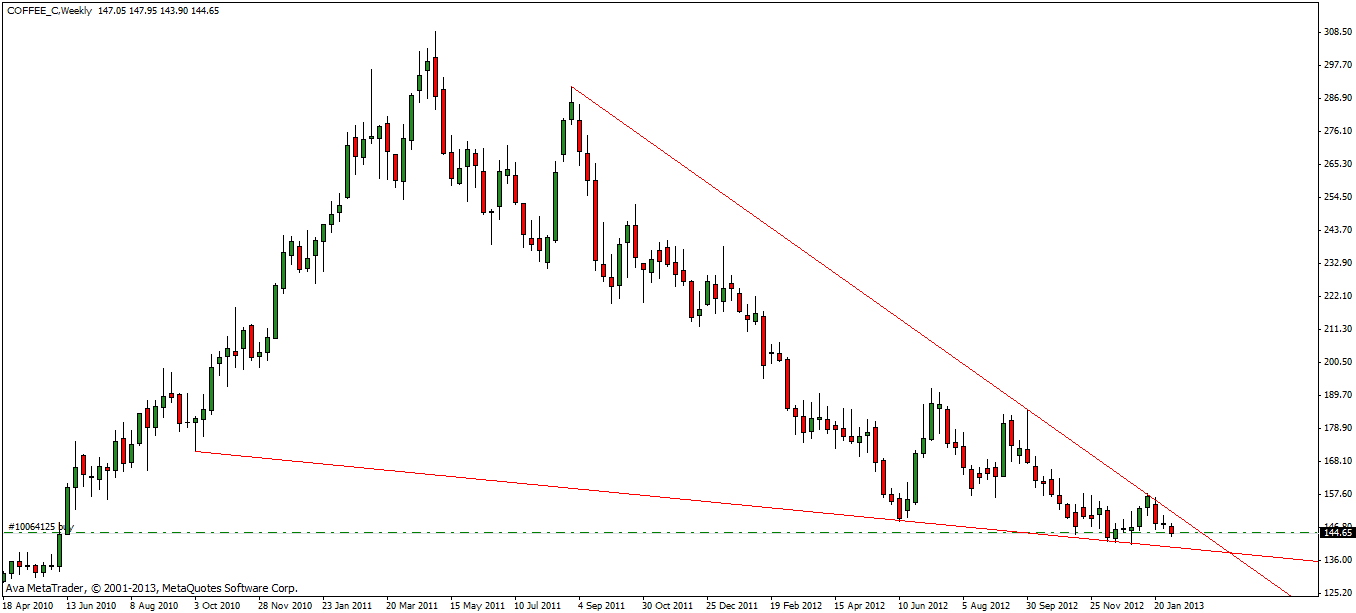 Kaffee sieht nicht gut aus Wir werden nach unten maschieren­ zur Linie und wie es momentan aussieht wird sie brechen.