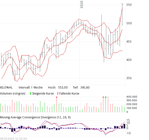 Wie schon gesagt, ist das`` all time high``von Ende 2017 (bei ca. 550,- Euro) vor kurzer Zeit endlich durchbrochen worden. Die kommenden Zahlen dürften positiv überraschen, da EUROFINS eindeutig zu den Profiteuren der die COVID19- Krise gehört.