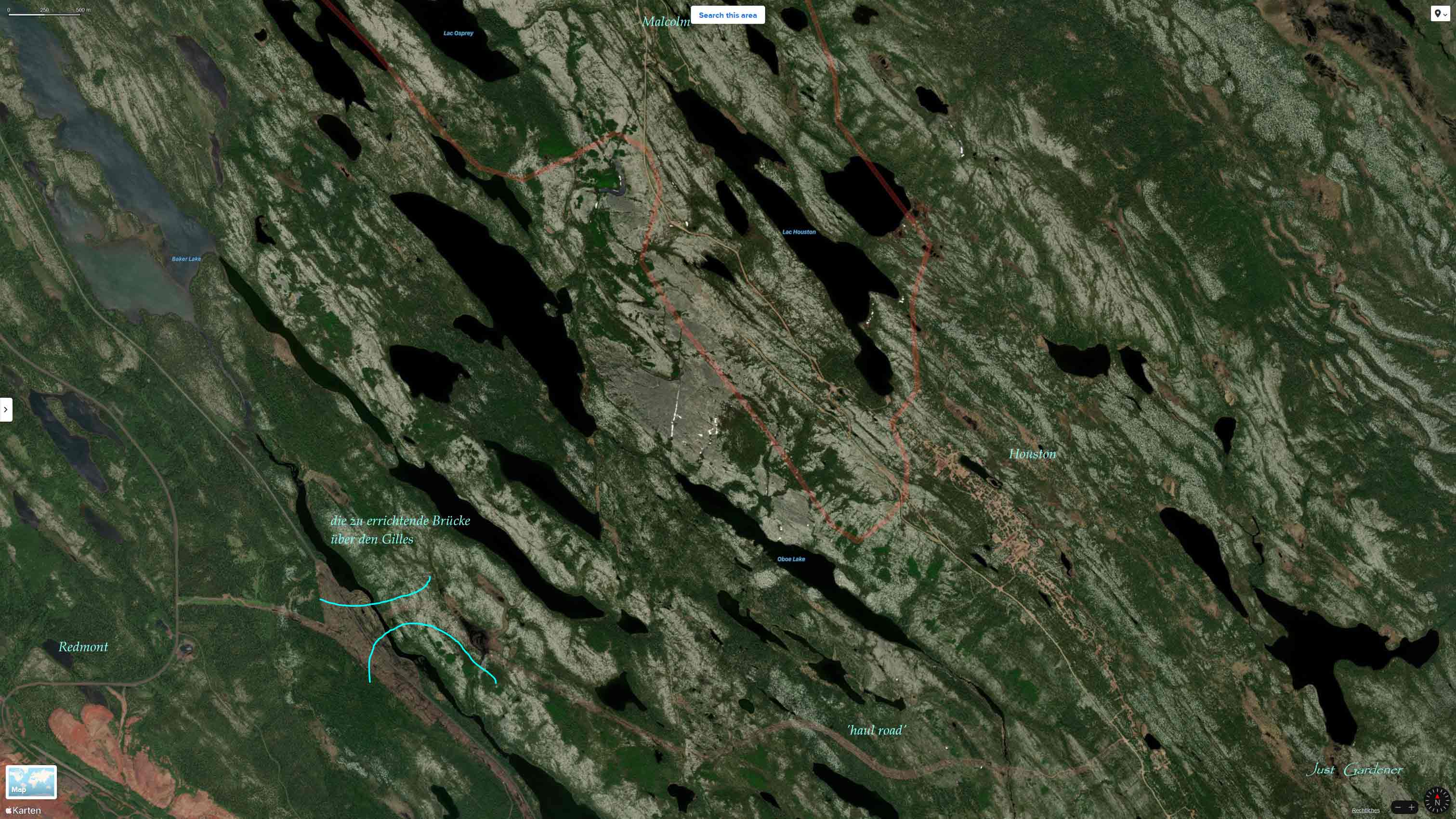 die im Anhang befindliche Karte zeigt m.M. bereits Aktivitäten (Fahrzeugspuren) im Bereich der Konstruktions-Arbeiten.
