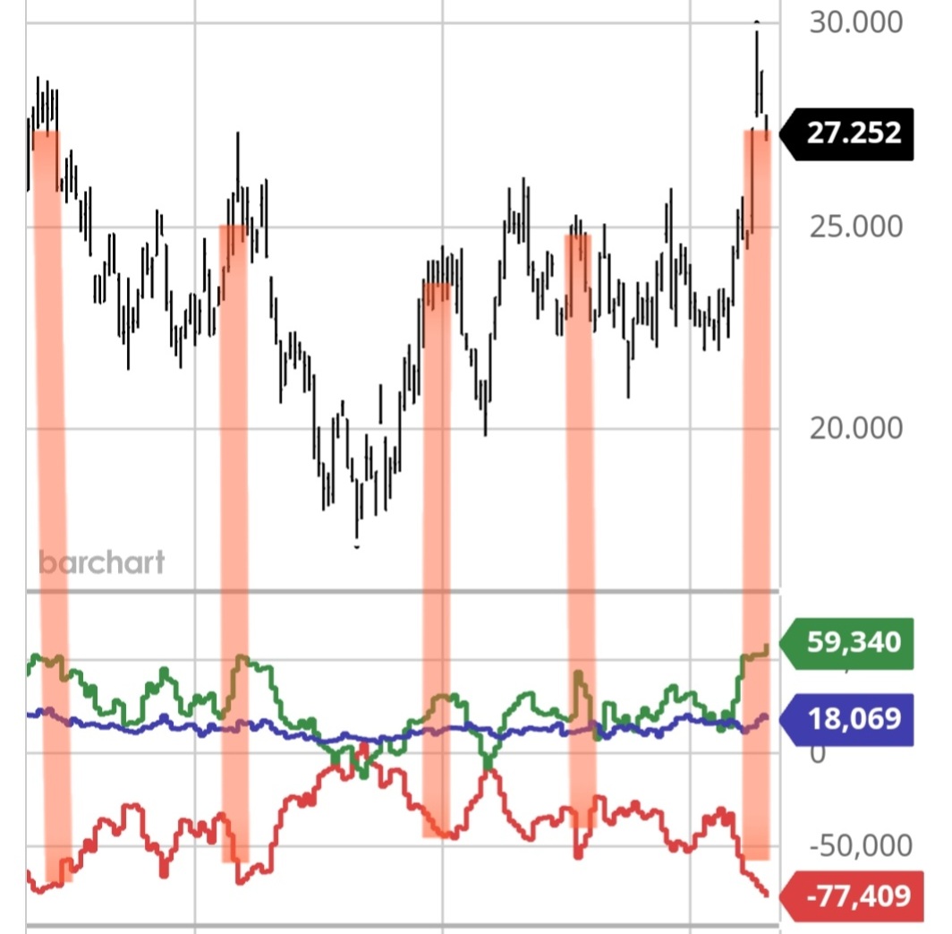 Die Minen (commercials rot) verkaufen auf Kontrakt als gäbs kein morgen. War schon meisstens so dass ab 50k contrakte die Sache wackelig wird und man am besteb was beim Kirchturm dankend ans Kreuz hängt.