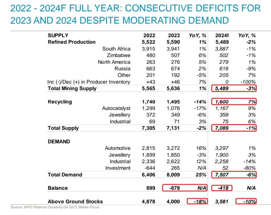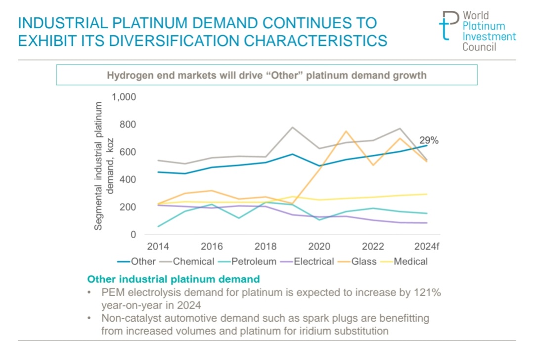 “We know that supply growth and demand growth don't always match, so we've encouraged the Chinese policymakers to recognise the importance of platinum investment demand, and of having more platinum metal on Chinese soil as a certain support to the industrial use of platinum over time.