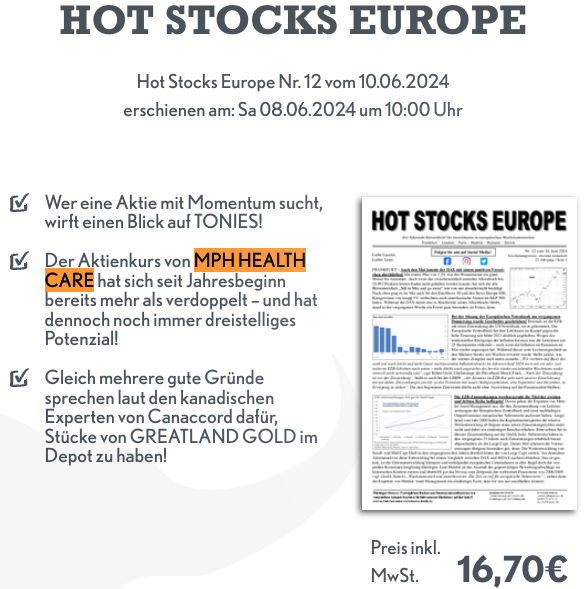 . . . analysiere ich regelmäßg. Seit Jahresbeginn 2024 hat der Aktienkurs von MPH Health Care (25,20 €) AG nur (noch) um 53 % zugelegt. Von einer Verdoppung seit Jahresbeginn (siehe unten) ist der Kurs wieder weit entfernt, obwohl er immer noch ein dreistelliges Kurspotenzial hat.