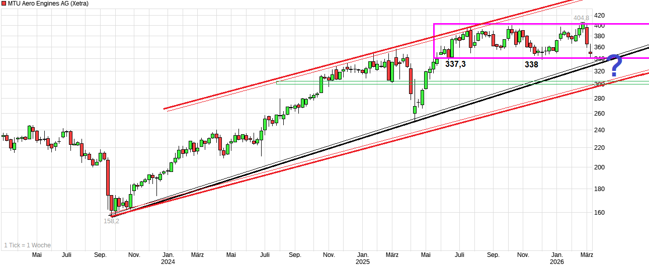 Na ja, Hype gab es eher bei Rüstungs- und Infrastrukturaktien, bei Produktionsfirmen aus der Luftfahrt nur am Rande. Sicherlich haben die Luftfahrtproduzenten auch z.T. gewisse Rüstungsbereiche, aber der absolut dominante Bereich ist doch die Zivilluftfahrt. Und z.B. Werte wie Airbus oder MTU sind doch nicht zuletzt eingeknickt wegen des Endes eines Hypes, sondern weil man schwächer als erwartete Ausblicke geliefert hat. Mit solchen Vorgaben wird man in sämtlichen Branchen "verprügelt". Von daher sicherlich richtig wie du sagst auf eine Situation zu warten wo sich die Dinge wieder mehr beruhigen und auch eine gewisse Überverkauftheit erkennbar wird, was dann technische Gegenreaktion wieder auslösen könnte. Natürlich ist auch parallel z.Z. die Unruhe an der Gesamtbörse durch den Irankonflikt und die steigenden Ölpreise ( = steigende Inflation = sinkende Chance auf weitere Zinssenkung) mit eine Ursache für den Rücksetzer bei Werten wie MTU. Da ist schwer zu sagen, ob das jetzt zügig über die Bühne gehen wird oder es eher eine zähe Sache bis in den späten Frühling wird. Wichtig ist aus Chart-Ansicht, ob die Region 337/338€ weiter verteidigt wird oder man durchfällt. Seitenlinie ist aktuell kein schlechter Ort bis eine Entscheidungsfindung erkennbarer wird.