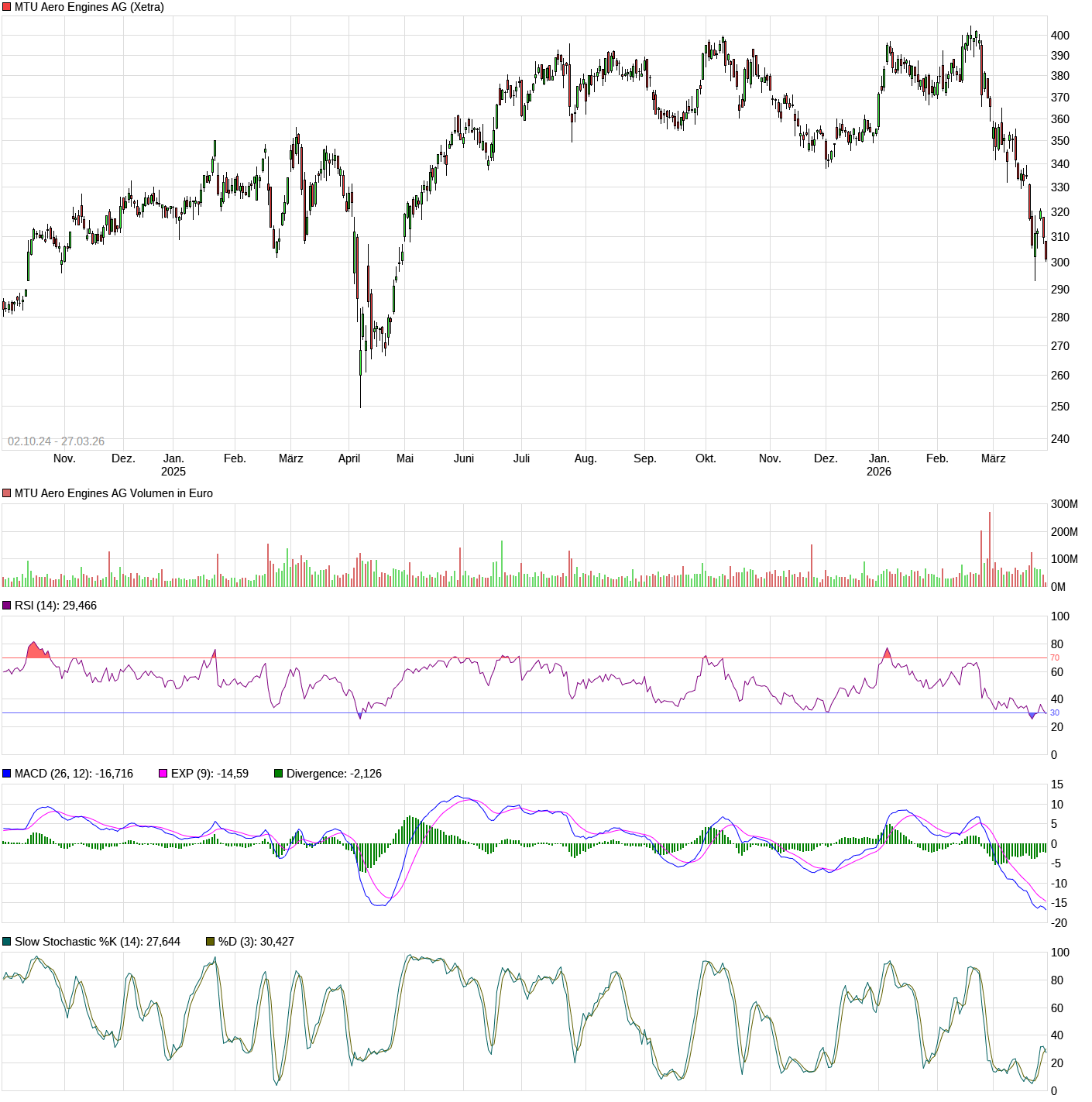 Auch der Dax ist eigentlich für eine breiter angelegte Erholung reif. Dort ist auch alles völlig überverkauft. Und im Zuge dessen könnte auch MTU wieder steigen.