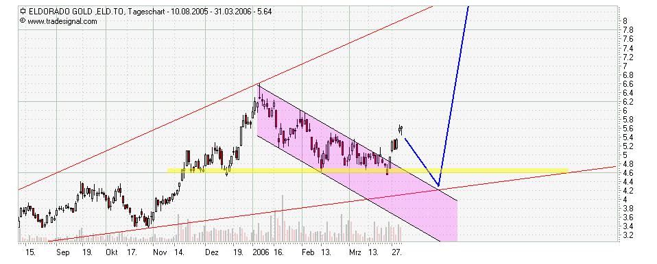 zu eldorado mein senf der ausbruch ist noch nicht im trockenen.­ eldorado verfügt über ein dünnes charttechn­isches gerüst. aber trotzdem klar bullisch, mit rückschlag­möglichkei­t.