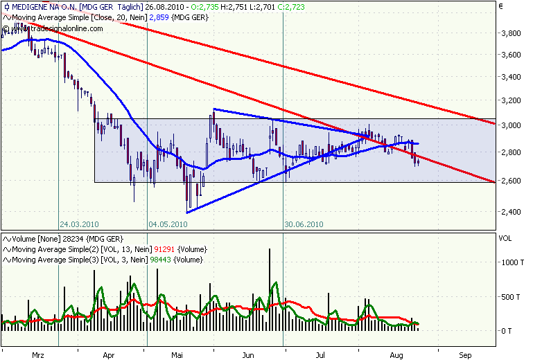 Aber Medigene geht immer wieder oben oder unten aus dem Diamanten raus und heftig passiert gar nix. Für mich ist da nur ein immer weiter verflachendes Dreieck ohne Relevanz.