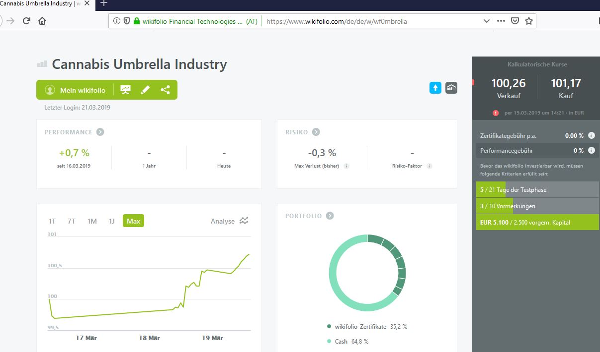 aktuell beteht ein mir bekanntes Dach-Wikifolio für die Cannabis-Branche ohne Handelszulassung
