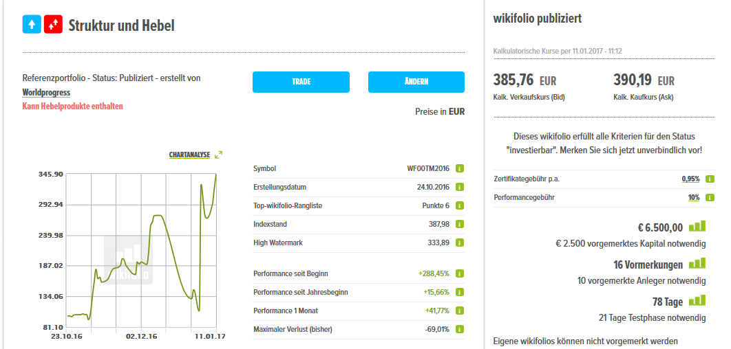 2. Mein neues Wikifolio ist ein Dach-Wikifolio mit den Top Wikifolios auf Basis verschiedener Kennziffern (Performance über verschiedene LZ und Entwicklung der Performance / max Verlust) und benötigt noch Vormerkungen bis zur Publizierung