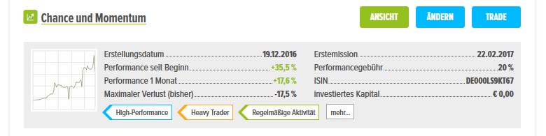 "Chance und Momentum" ist sehr riskant und stark volatil.