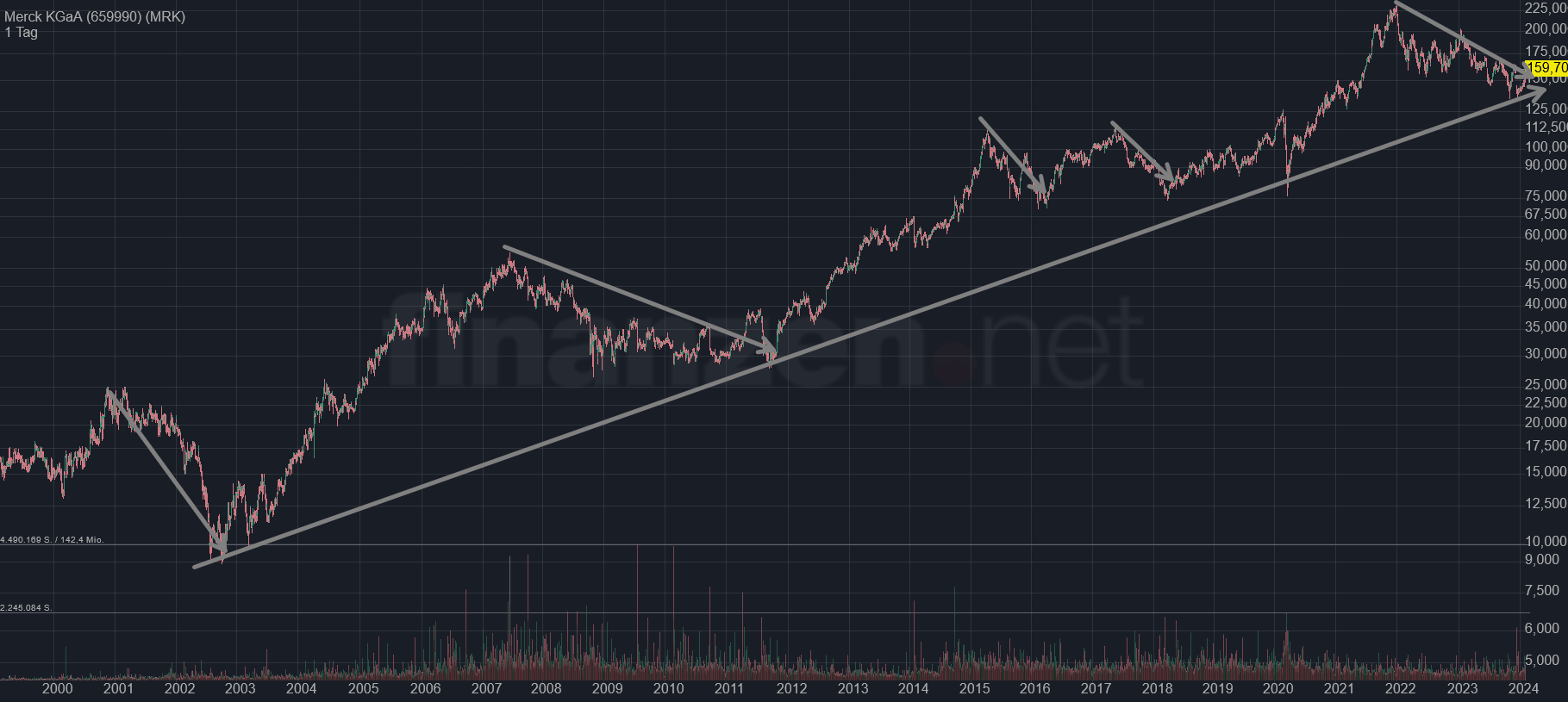 Die Aktie von Merck setzt den starken gestrigen Kursrückgang weiter fort, am Dienstag verliert sich nochmals -2,5% und steht aktuell bei knapp 150,50 €. Ursache hierfür ist die Meldung vom 24. Juni, dass die Entwicklung von Xevianapant eingestellt werde. Kommt jetzt der große Crash?