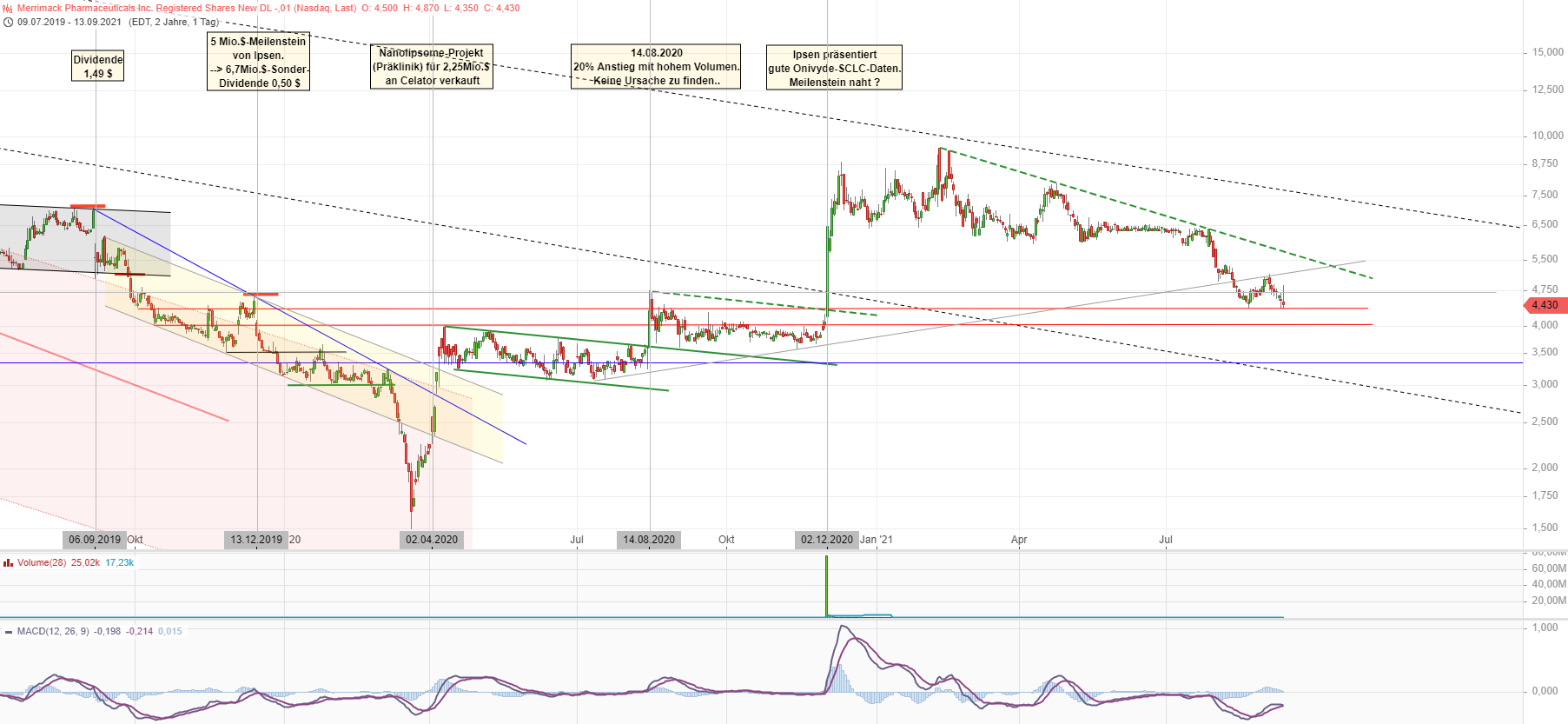 Merrimack Pharmaceuticals - ist ein relativ kleines Biotechunternehmen aus den USA mit einer guten Forschungspipeline und einem zuglassenen Produkt (nur US) -Onivyde- gegen Bauchspeicheldrüsenkrebs. Die Chance auf eine Zulassung in Europa stehen gut Onivyde also just got the "thumbs up" from The European Medicines Agency's Committee for Medicinal Products for Human Use.