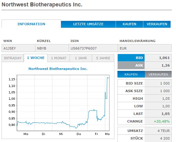 Sehr riskant, aber könnte die neue Dendreon werden, mit positiven Ausgang, mit Flaskworks hat NWBO