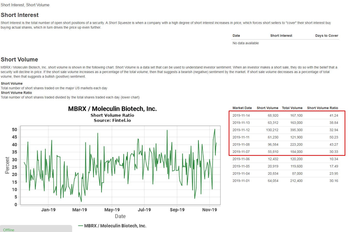 bestätigen das aktuelle hohe Short Volume Ratio, https://fintel.io/ss/us/mbrx