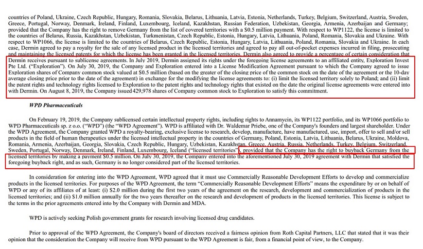 so wie es aussieht und wenn ich es richtig lese, haben Sie Lizenzrechte für den Markt Deutschland “zurückgekauft” ... “Bezahlung” erfolgte über Ausgabe neuer Aktien.