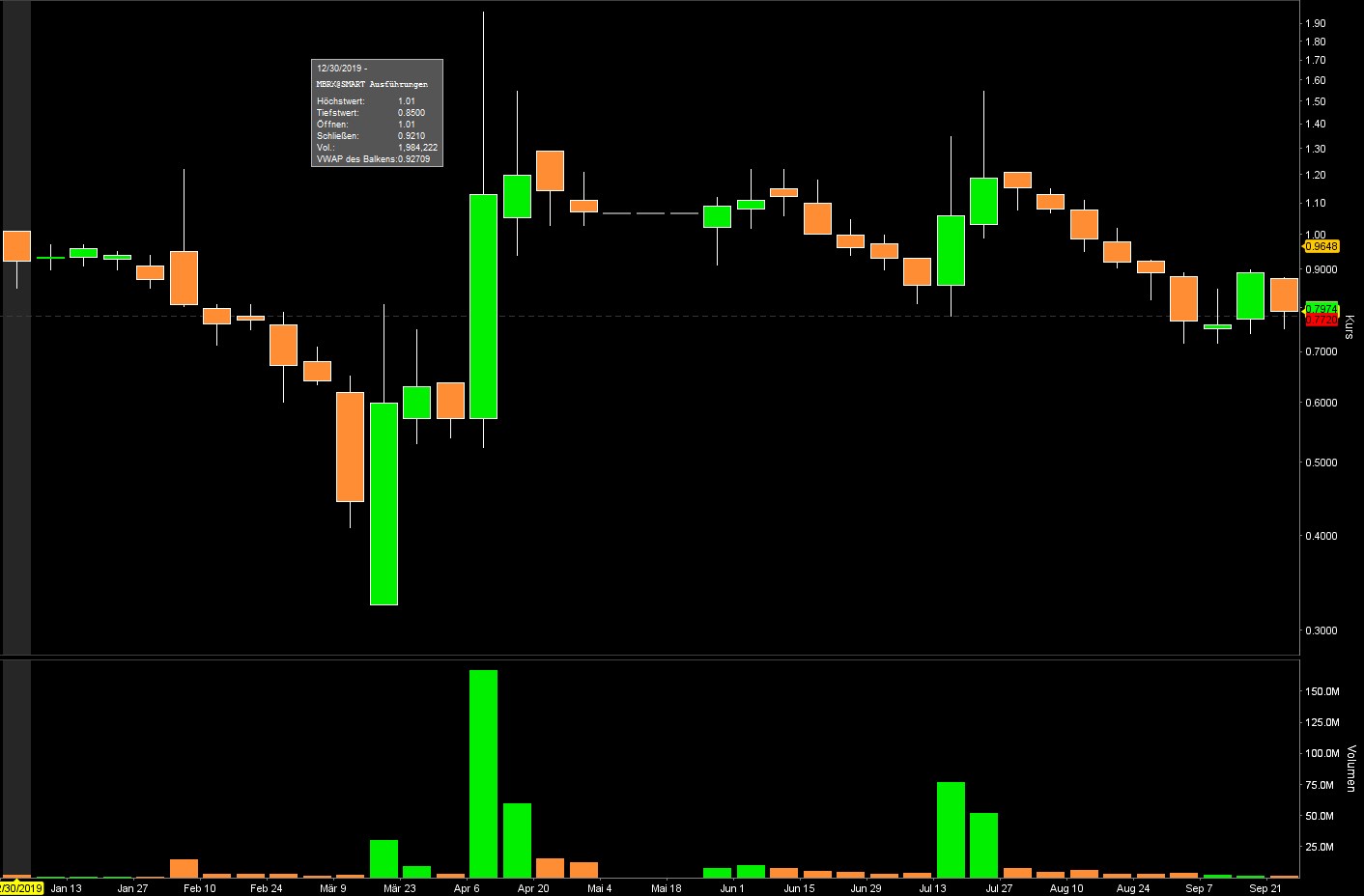Die 7,500,000 Aktien aus dem Feb. Offering gingen zu $0.80 raus.