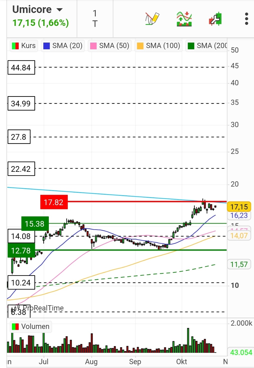 Umicore ist aber auch nicht schlecht. Viel sicherer aber auch nicht so chancenreich. Börse halt.