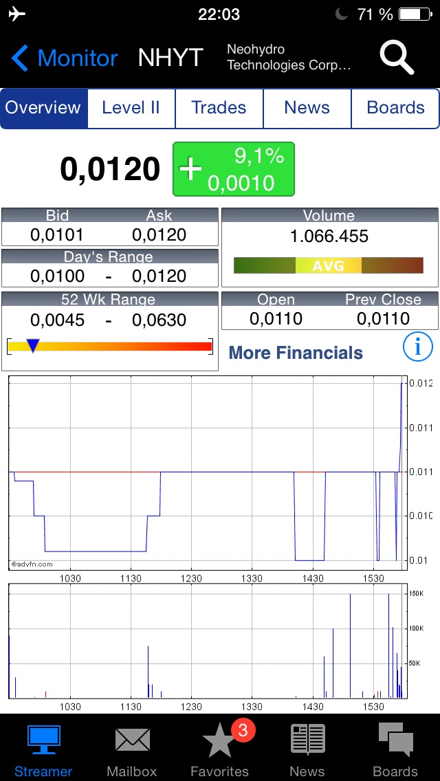 Highly #speculative NeoHydro (NHYT) we said here on May 19 entry at $0.008 for a weekly 50% #volatility, it did 37.5%,back at entry