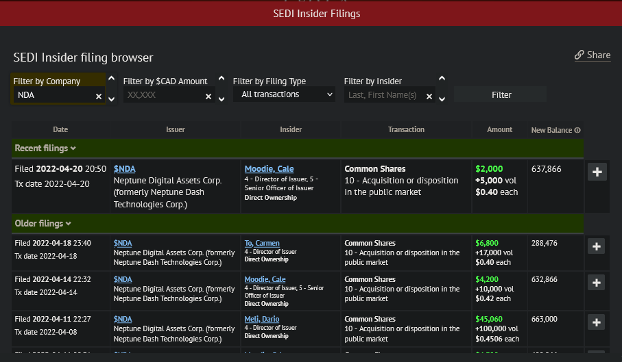 und geballt auf Sedar, Beispiel "SEDI Insider filings", s. link