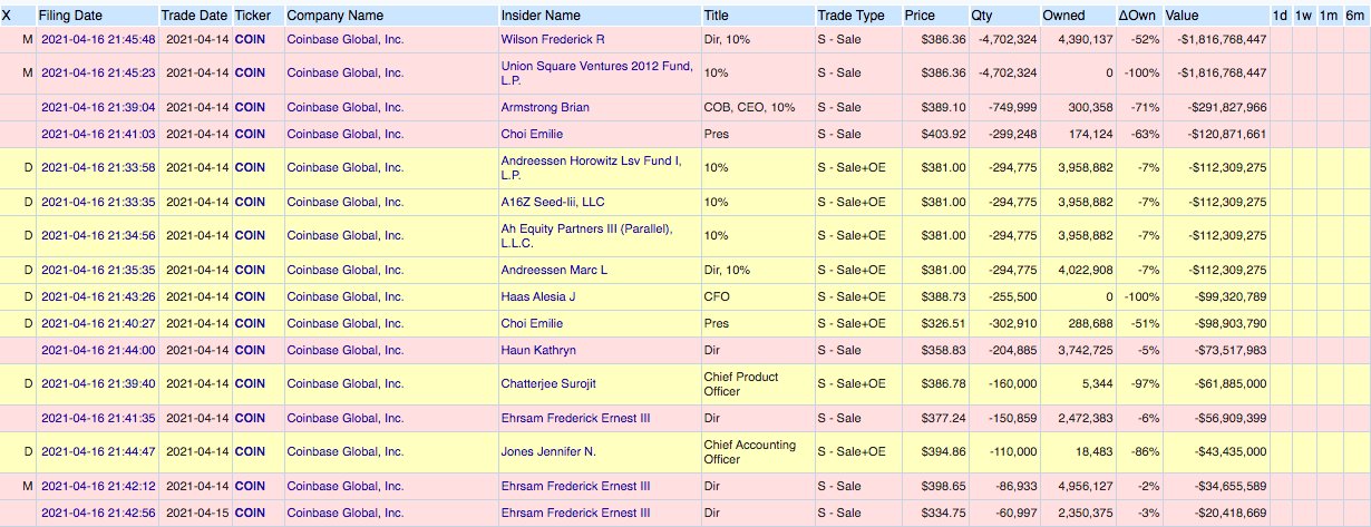 In der Liste seht ihr was der ceo und andere Mitarbeite­r ausgecasht­ und und paar insider.