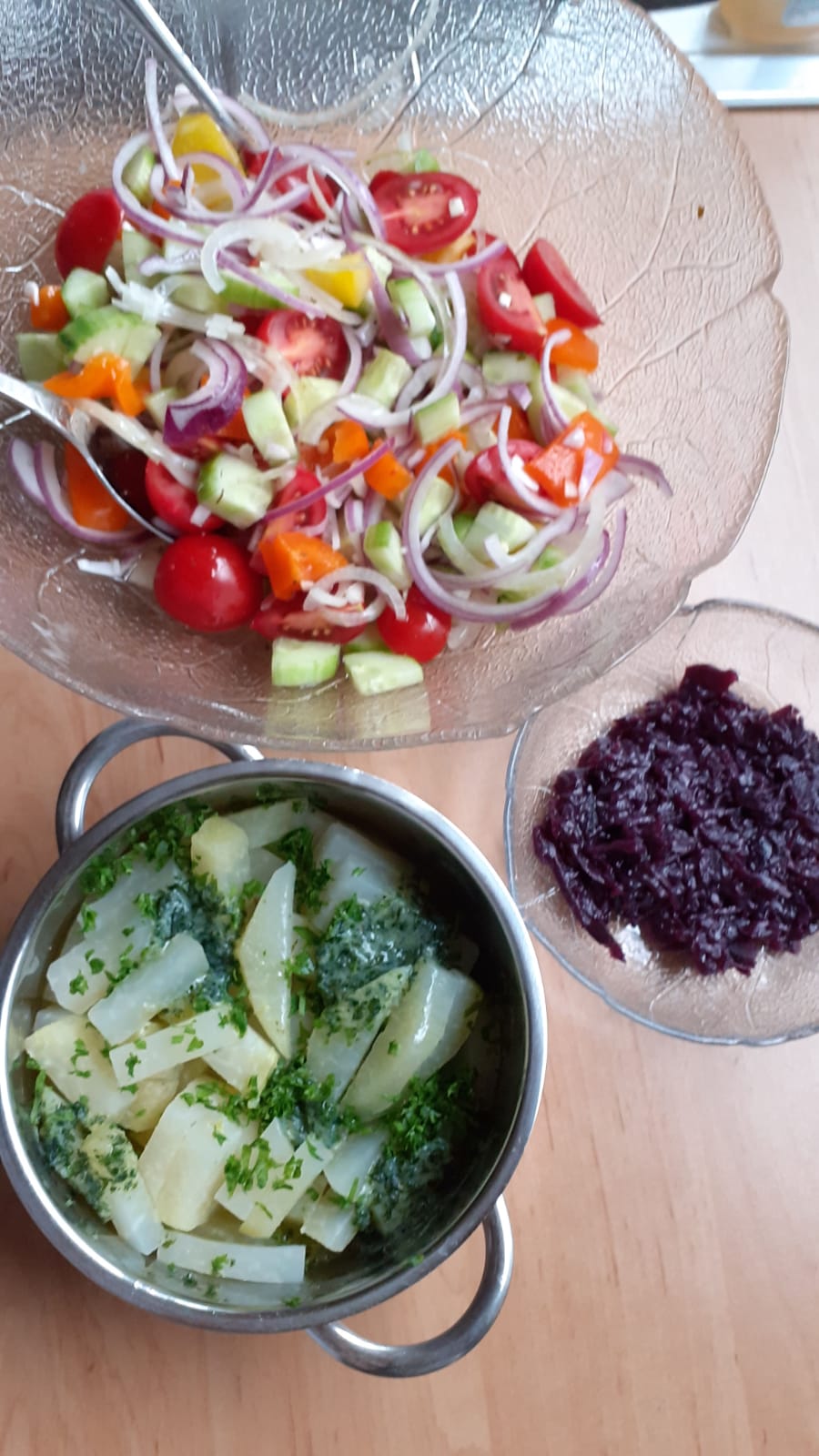 Mittags gab es Rinderbraten (falsches Filet) mit Spätzle und Krautsalat.