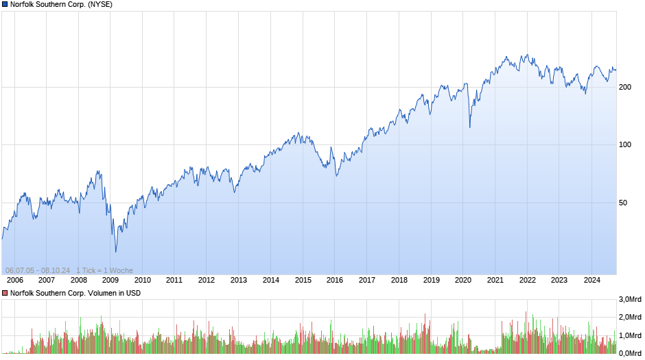 Norfolk Southern Corp. ist eine Holdinggesellschaft, deren Tochtergesellschaften in den Bereichen Schienentransport,