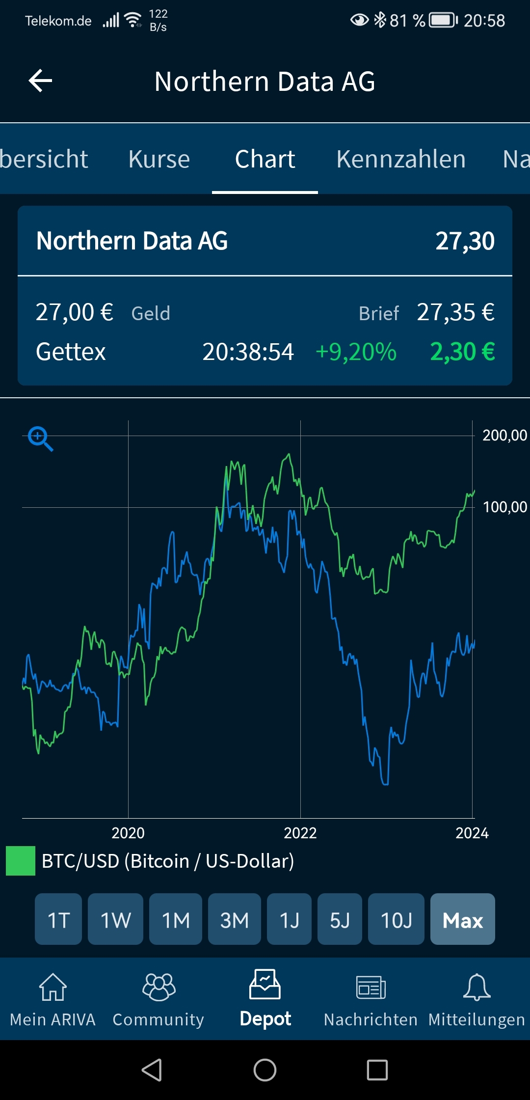 Wenn man nach Bitcoinkursen von 2020/21 gehen sollte und ein vergleich stellt, sollte der Northern Data bei mindestens 60€ heute stehen. Also kann noch viel passieren. Vielleicht hat sich die Rakete heute gezündet.