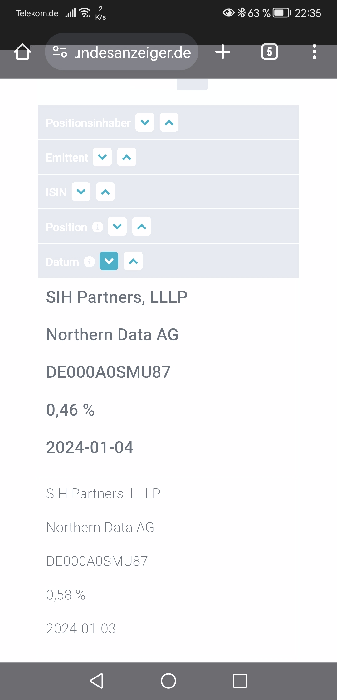 Vorstand kauft seit heute Northern Aktien für bis zu EUR 9 Millionen pro Monat, insgesamt für bis zu EUR 30 Millionen, in der Zeit vom 8. Januar 2024 bis 8. Mai 2024.