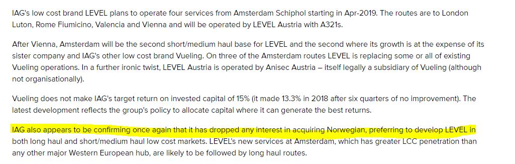 Tja, trotz aller Bemühungen scheint weiterhin keine Entwarnung gegeben zu sein. Die angekündigte KE muss schnell kommen, sonst ist nach der geplatzten Übernahme durch die IAG wohl Feierabend. Kein Wunder nach den rund 300 MIO EUR Verlust für 2018 auf EBIT - Basis! Und das bei der atemberaubenden Verschuldung - die Zinsen kommen auf den Verlust ja noch dazu. Und diese Meldung läßt m.M.n. jetzt zusätzlich vermuten, wie dicht vor der Pleite die Norweger sind:
