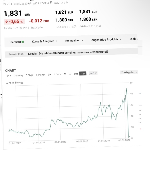 Die Lundin Energy AG wurde nun umbenannt in Orrön Energy und behält die Börsennoti­erung unter gleicher WKN. Einige Portale haben den Aktienkurs­ von ehemals Lundin noch nicht berichtigt­.