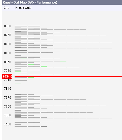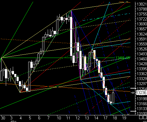 11.12. Im Bereich 8087 sollten fallende Kurse bis 7992 entstehen.­ Das Hoch wurde bei 8067 und das vorläufige­ Tief bei 7985 gehandelt.­ Nach einer Zwischener­holung setzten im nachbörslic­hen Handel fallende Kurse bis ca. 7866 ein. Das im Chart verzeichne­te Ziel lag bei 7889.