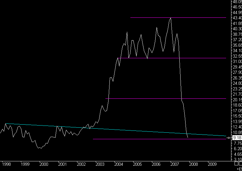 Kursverlauf seit 22.12.2003 (log. Kerzenchartdarstellung / 1 Kerze = 1 Woche)