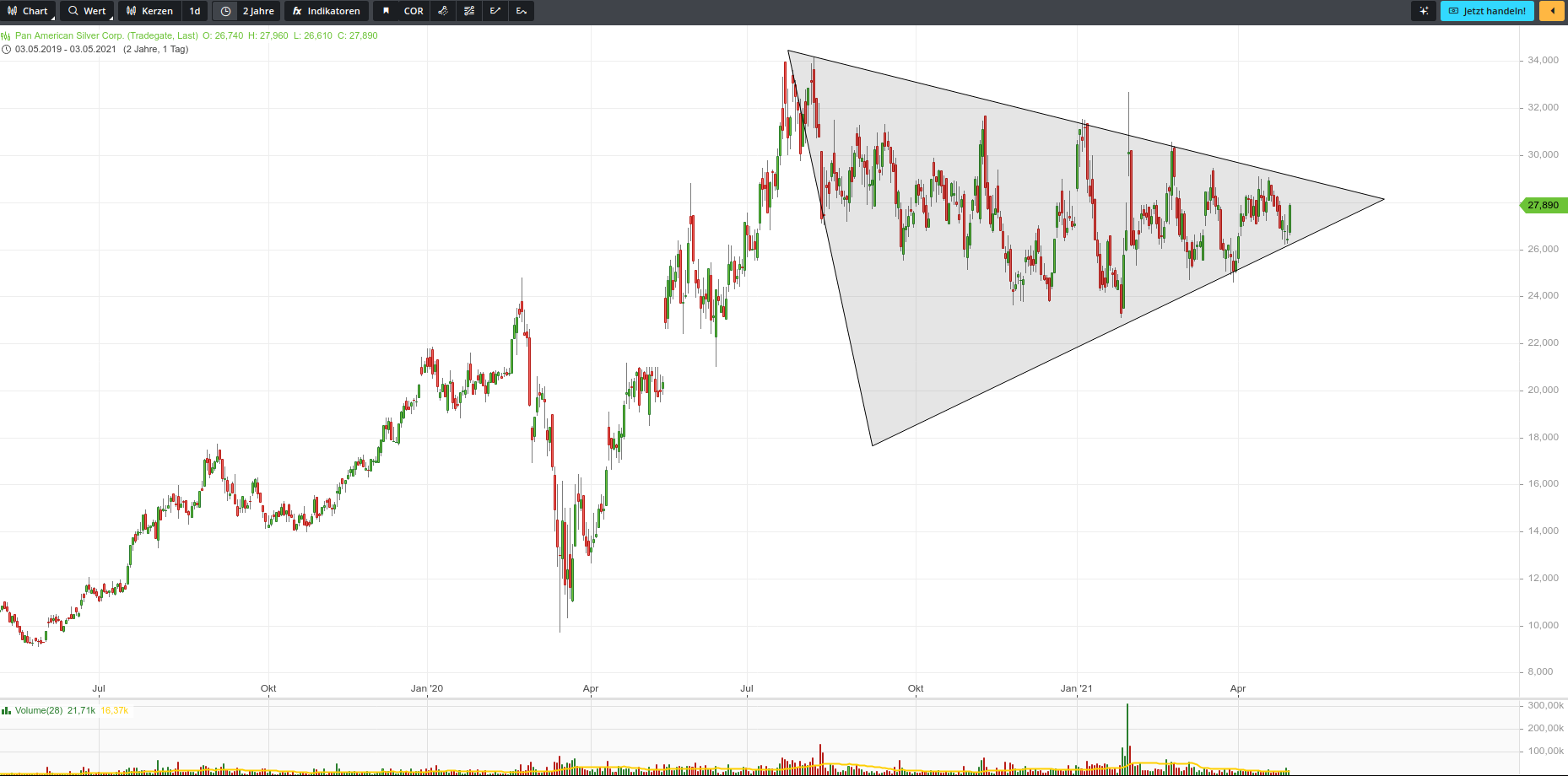 ... ,dass sich bei PAAS wieder was tut. Für die kommende Woche bin ich leicht optimistisch. Das Interesse für Silber erhält neuen Auftrieb. Im US-Senat startet zudem die Runde zu Bidens Billionenprogramm von dem die Solarindustrie stark profitieren dürfte. Bidens Konjunkturprogramm dürfte weltweit die Nachfrage nach Silber in den nächsten Monaten antreiben.