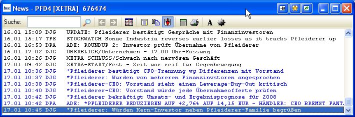 Erst am Mittwoch hatte Pfleiderer mit Aussagen über einen möglichen Einstieg von Finanzinvestoren den Preis seiner Aktien in die Höhe getrieben. "Einer der Finanzinvestoren hat dem Vorstand der Pfleiderer AG mitgeteilt, dass er über die Unterbreitung eines Übernahmeangebots nachdenkt", hatte das Unternehmen mitgeteilt.