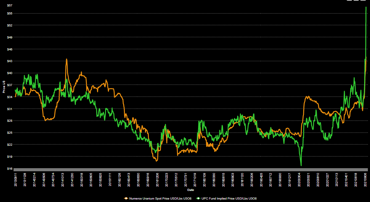 Der SPUT handelt derzeit aber schon 28% über NAV und muss erstmal neue Anteile ausgeben erhält dafür Cash um Uran dem Markt zu entziehen (das macht den Druck auf den Uranpreis in den nächsten Wochen sicher) und hebt so den Uranspot Preis wahrscheinlich Richtung 60$ in den nächsten Wochen (nicht Monate wie in dem vorherigen Artikel beschrieben).
