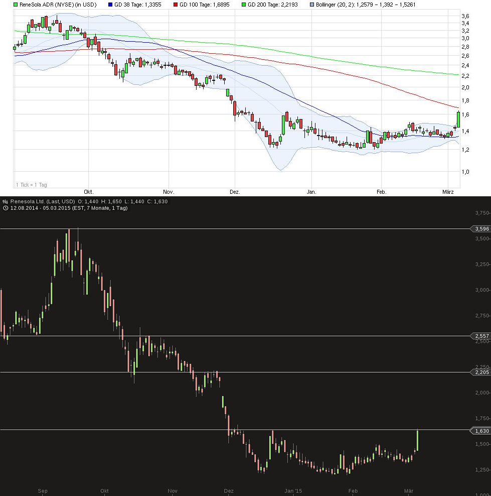 Die Aktie von ReneSola legte vorbörslich um 14,2 Prozent zu, nach Handelsbeginn geht es um 5,1 Prozent auf 1,23 USD nach oben.