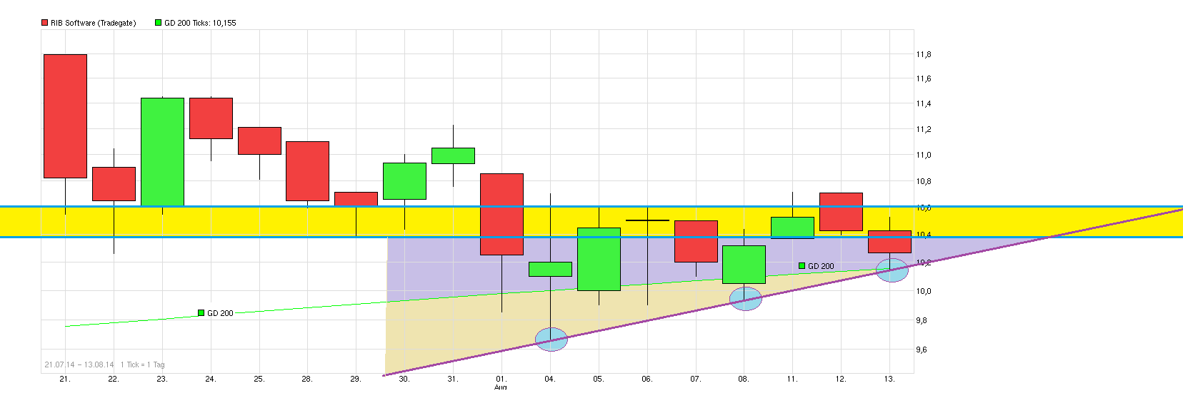 Sollten es dagegen unter die 9,7 laufen, dann wären auch Kurse Richtung 8 denkbar.