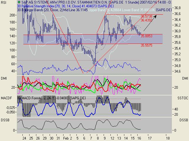 Ich bin, nachdem die Aktie so massiv verloren hat bei 36€ eingestiegen. Habe gehofft, SAP würde sich bei 37-37,50 fangen, doch nichts ist. Wer postet, dass SAP bald auf 38€ hoch geht, den bitte ich sich mal den DAX anzuschauen, wir sind hier knapp bei 7000 Punkten! Meiner Meinung nach kommt die nächste Korrekturwelle in 1-2 Monaten! Werde mein Geld lieber wieder rausziehen um dann wieder einzusteigen.