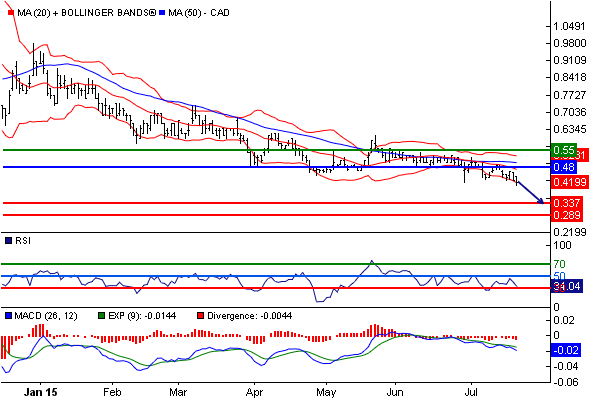 Was passiert wohl, wenn wir den Wert unterschreiten? Vermutlich wieder SL´s und wir landen unter 0,15 CAD, d.h. 0,11 EUR.