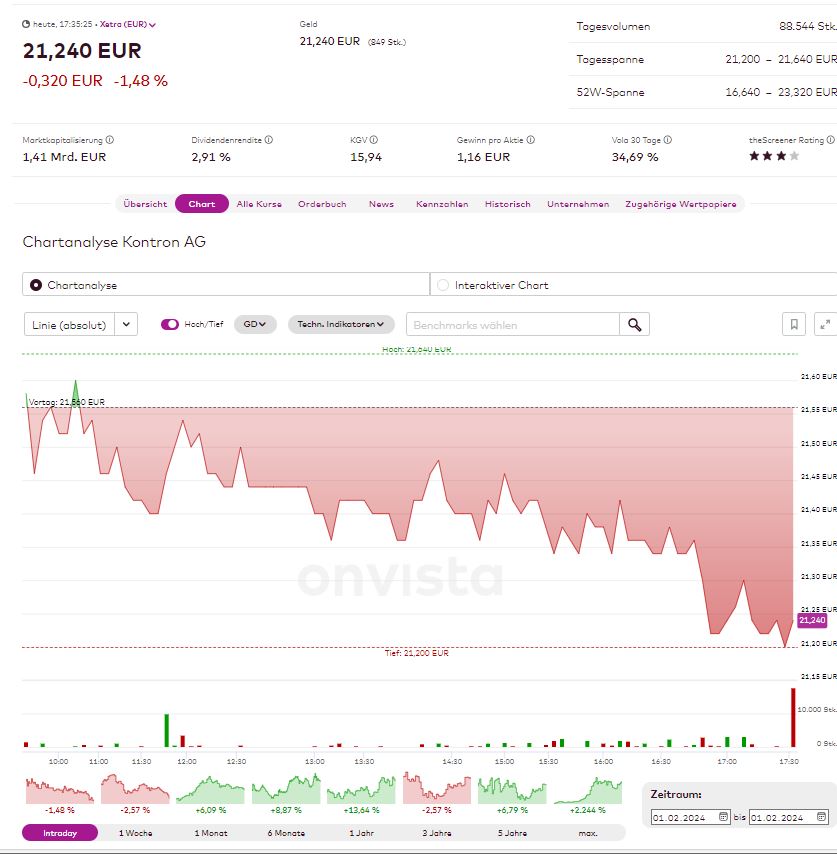 Kontron fällt entweder ziemlich stark, oder steigt steil an oder läuft Ewigkeiten­, gelangweil­t in irgendwelc­he Keile....