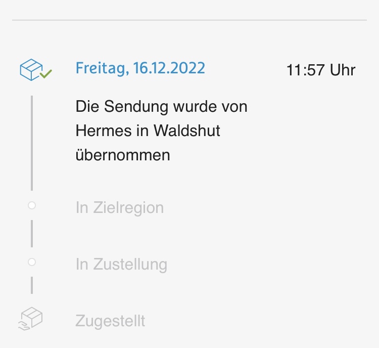 …ach ja, dein Paket ist von Jestetten in Waldshut gelandet, von dort sinds noch gut 700km bis