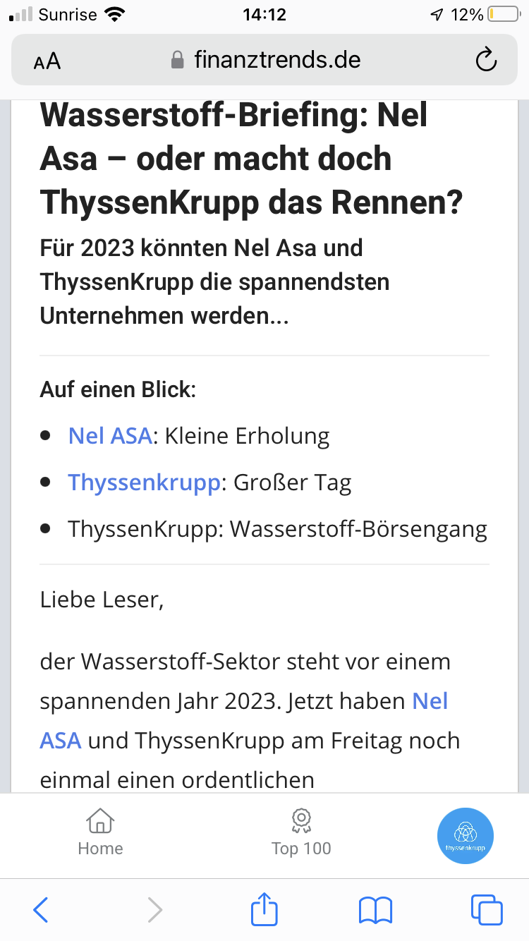 …und wegen den Stahlaktien ist Thyssenkrupp, erste Wahl, im 2023 sollten sie anziehen, haben viele