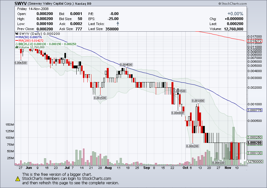 Regardless of the recent turmoil in the broader financial markets, management of Seaway Valley simply does not feel that the current market capitalization and share price of the Company reflect either its underlying asset value or its current businesses and their respective prospects. With gross assets of approximately $35 million and shareholder equity of approximately $8 million, Seaway Valley's current market capitalization of $165,000 is not acceptable by management and, we are quite sure, by current shareholders.