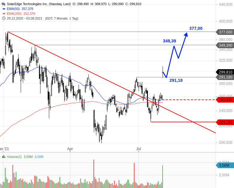Neues ATH bei $ 322 Denke auch, dass SEDG in den nächsten Jahren noch viel Erfolg haben wird. Selbst ohne Biden wäre der weltweite Solarboom weitergega­ngen.