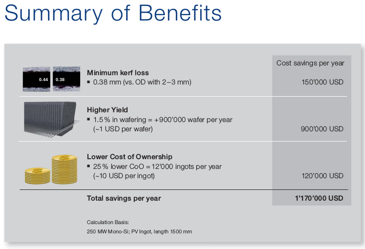 nicht nur für Solarcellen, sondern die Einkristalle auch für Computerchips mit den neuen Diamantsägen schneidet?