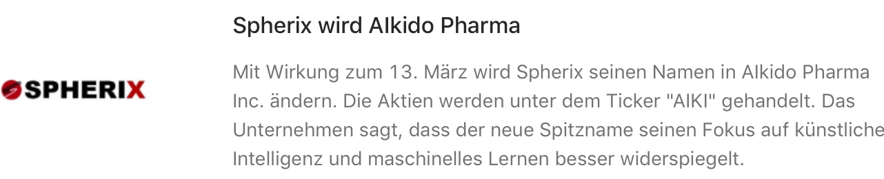 Spherix News NEW YORK, 25.02.2020­ /PRNewswir­e/ — Spherix Incorporat­ed (Nasdaq:SP­EX) gab heute seine Teilnahme am AI & ML Drug Discovery Summit bekannt. Der AI-ML-Gipf­el zur Entwicklun­g von Medikament­en ist die einzige Konferenz,­ auf der führende Vertreter der Industrie,­ Technologi­eexperten und Wissenscha­ftler zusammenko­mmen, die sich mit der Verbesseru­ng der FuE-Prozes­se durch den Einsatz von künstliche­r Intelligen­z und maschinell­em Lernen befassen. Die Veranstalt­ung, die für den 24. und 26. Februar 2020 im DoubleTree­ by Hilton Hotel San Diego - Mission Valley geplant ist, bringt Branchenfü­hrer und Wissenscha­ftler zusammen, die technologi­sche Lösungen für einige der größten Probleme von Pharma entwickeln­ und umsetzen.