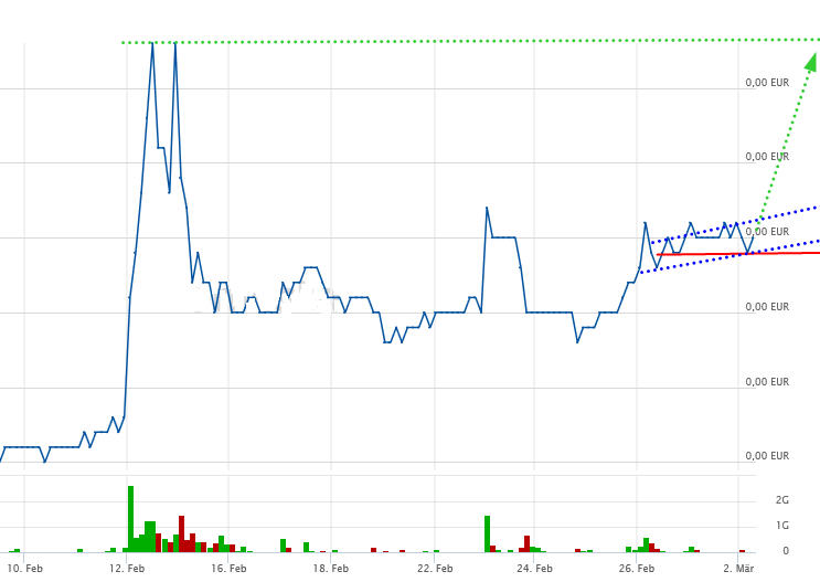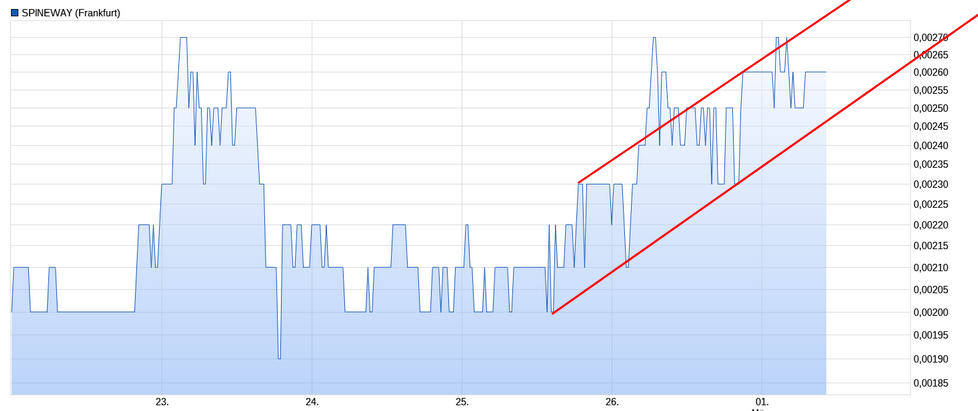Was gut aussieht, wenn man den heutigen Tag betrachtet, ist, dass wir uns bei 0,0025€ gehalten haben und nach unten festigen.