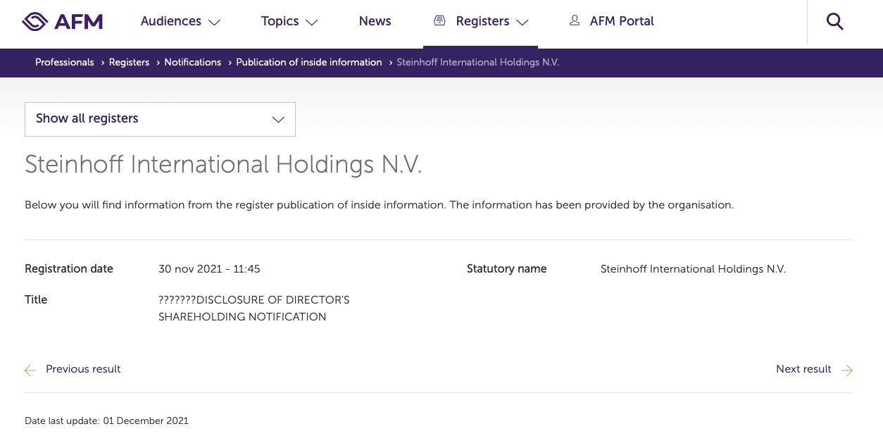 WKN: A14XB9 / ISIN: NL0011375019Steinhoff Informationsforum