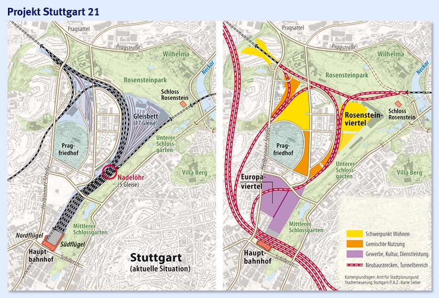 Solchen Betonköpfen ohne jede Maß vertraust du deinen agefahrenen Zug an. Die demokratische Zustimmung für Stuttgart 21 1995 gab es, als es noch hieß, das Ding zahlt sich von alleine, aus Grundstückserlösen. War damals schon gelogen. Privatrechtlich ein klarer Betrugsfall, aber der Staat will gegen den Bürgerwillen Milliarde um Milliarde raushauen für ein neues planerisches Nadelöhr.